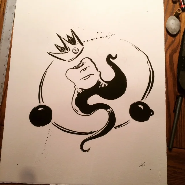 A brand spanking new piece done with ink and paint brush.